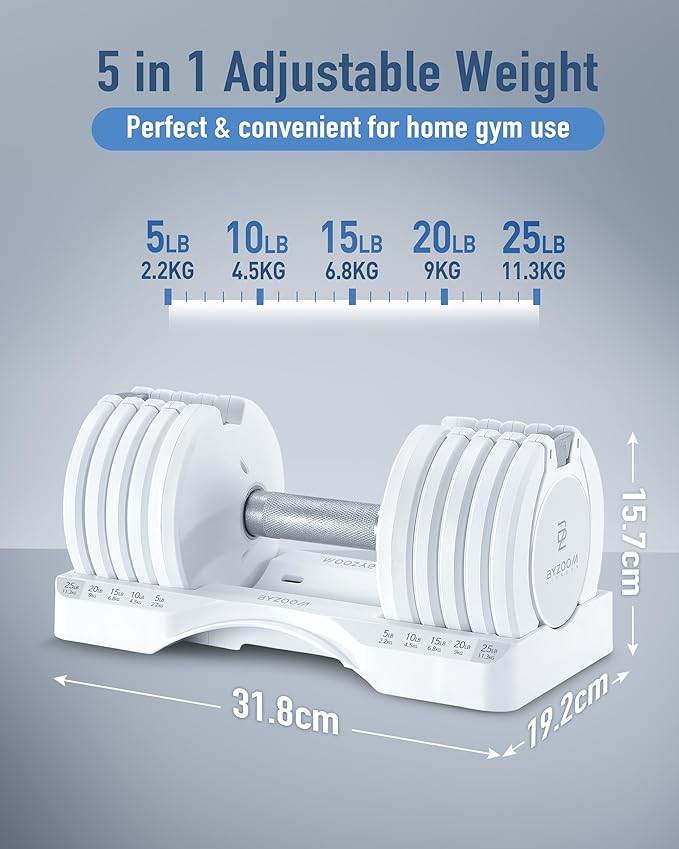 - Adjustable dumbbells with weights ranging from 5lb to 25lb for customizable workouts