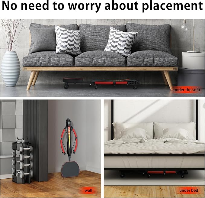 - Smart Monitor and Space-Saving Design: Real-time monitor display tracks exercise data such as counts, calories burned, and time. Compact size for convenient storage under furniture, with ultra-quiet operation for home use