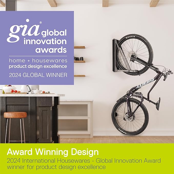 - Award-Winning Design: The Black Pivot Rack garage bike rack offers a full 150 degrees of swivel in both directions, providing hassle-free access to your bikes while maximizing floor space. International Houseware Association Gia Global Innovation Award winner.