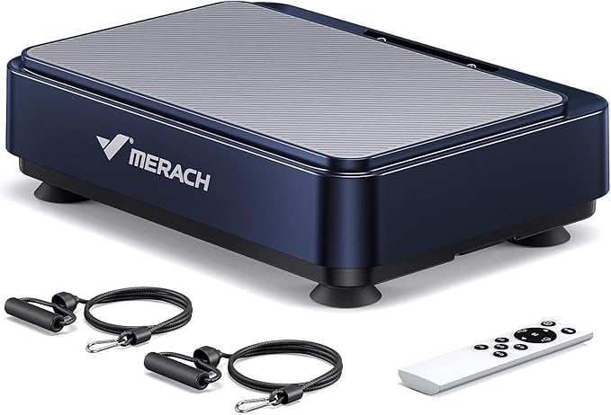 - [MULTIFUNCTIONAL HOME EXERCISE EQUIPMENT] The MERACH vibration plate is equipped with 2 tension ropes, which can exercise various parts of the body and meet the training needs of different people. Using the included remote control or through the screen buttons, the LED display allows you to check the time and speed and clearly understand your exercise situation.