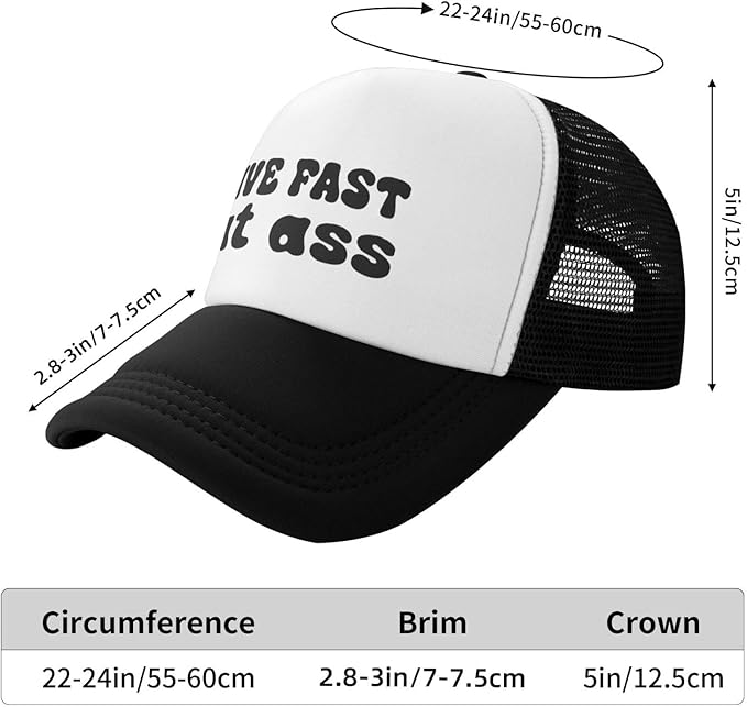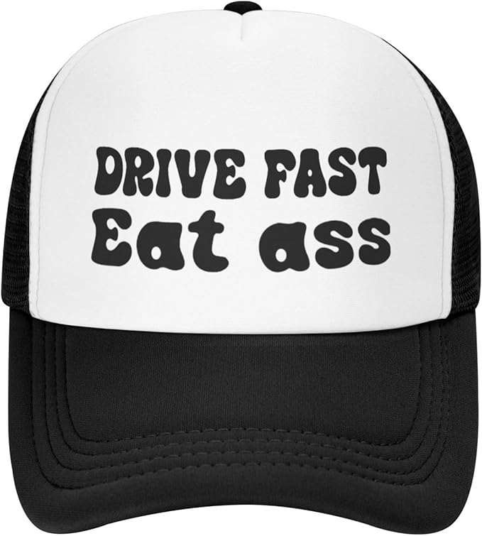 - Drive Fast Eat Ass Hat - Say No To Same Outfit. The Funny Drive Fast Eat Ass Trucker Hats With The Unique Funny Design, Funny Hats Will Make You Special And Become The Focus In Parties And Daily Life. The Womens Trucker Hat, Show Your Drinking Style.