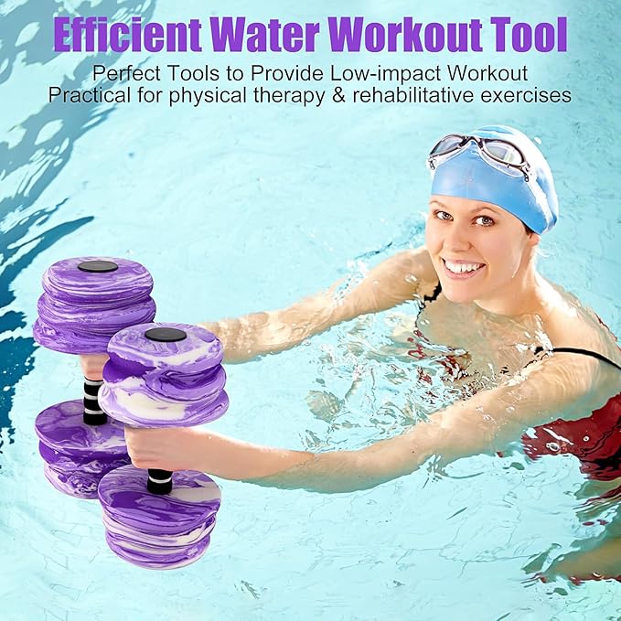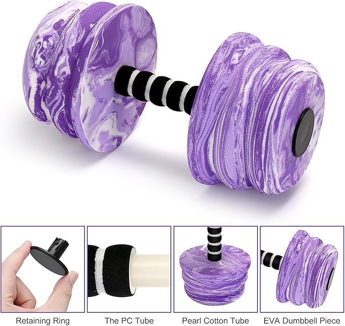 Aquatic Exercise Dumbbells, Water Dumbbells, 2PCS Foam Barbells for Men Women Water Workouts,Purple
