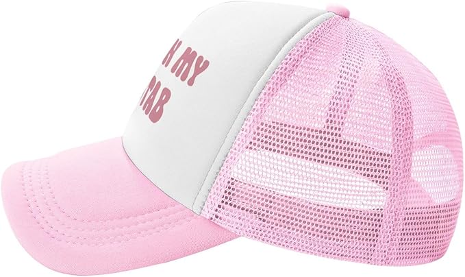 Put It On My Husband's Tab Drinking Trucker Hat - Funny Pink Trucker Hat for Women and Men