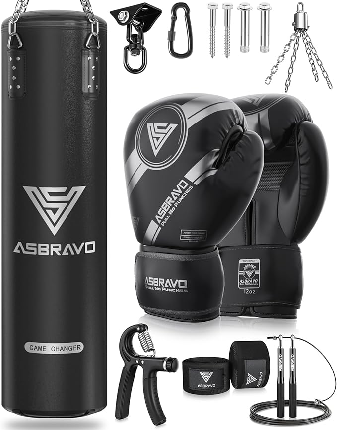 Punching Bag for Adults, 4ft PU Heavy Boxing Bag Set 12OZ Gloves for MMA Muay Thai Kickboxing Training Home Gym, Martial Art (Unfilled)