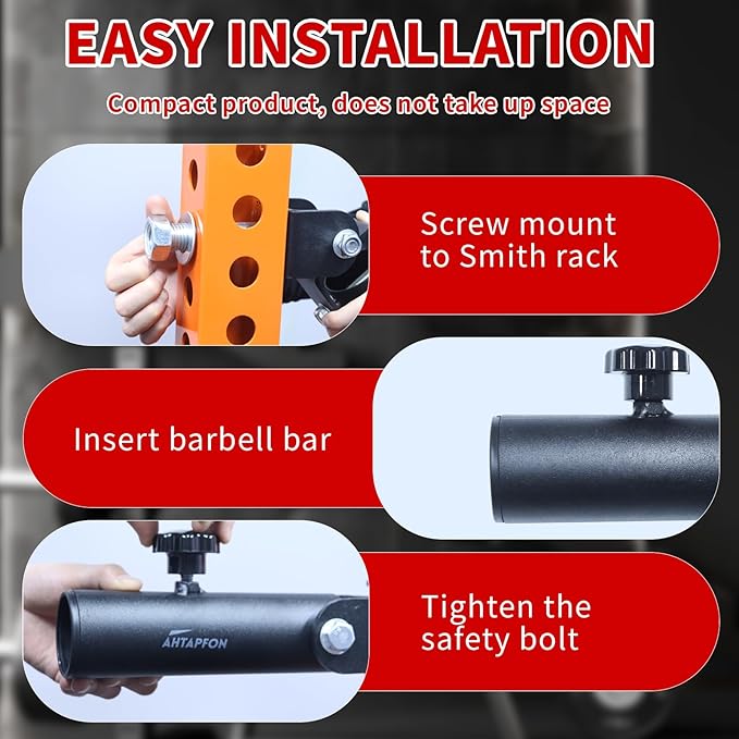 - EASY INSTALLATION: The landmine base has a choice of 26mm, 18mm and 16mm bolt hole sizes to fit different hole sizes of Smith racks. Once installed on the gym rack, simply slide the 2-inch barbell into the sleeve, tighten the safety knob, and you're ready to go.