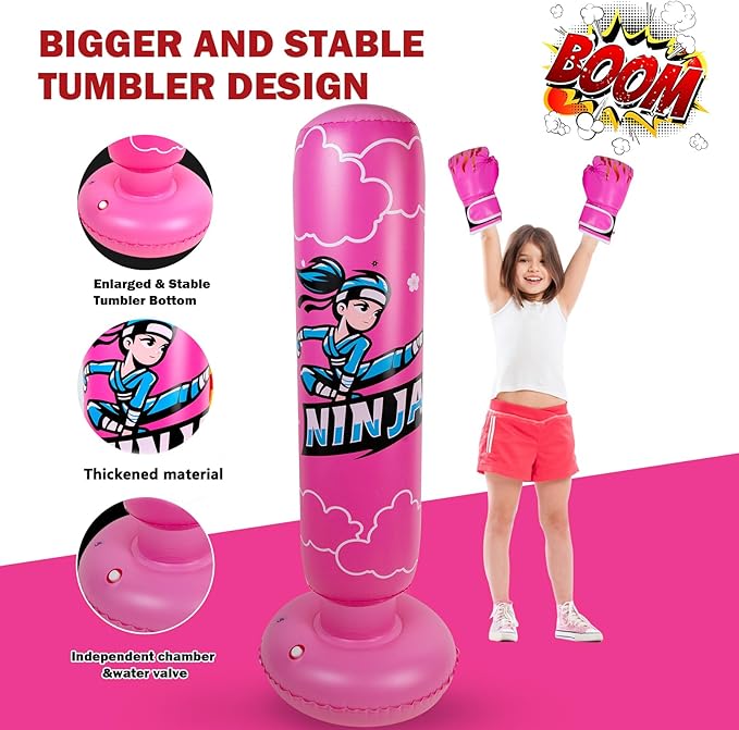 Larger Inflatable Punching Bag for Kids with Boxing Gloves,Tall 66 Inch Ninja Kids Inflatable Boxing Bag,Gifts for Boys & Girls Age 5-12 for Taekwondo,MMA and Practicing Karate