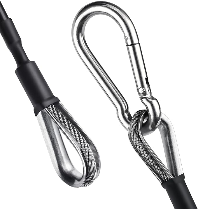 - 【Sturdy & Reliable Material】-- Our fitness extension cable for gym is made of stainless steel and PU, which is wear resistant and firm, durable and long service life. The connection between the steel wire and the PU sleeve has a nylon protective cover, ensure that the PU sleeve is firmly attached to the steel wire.