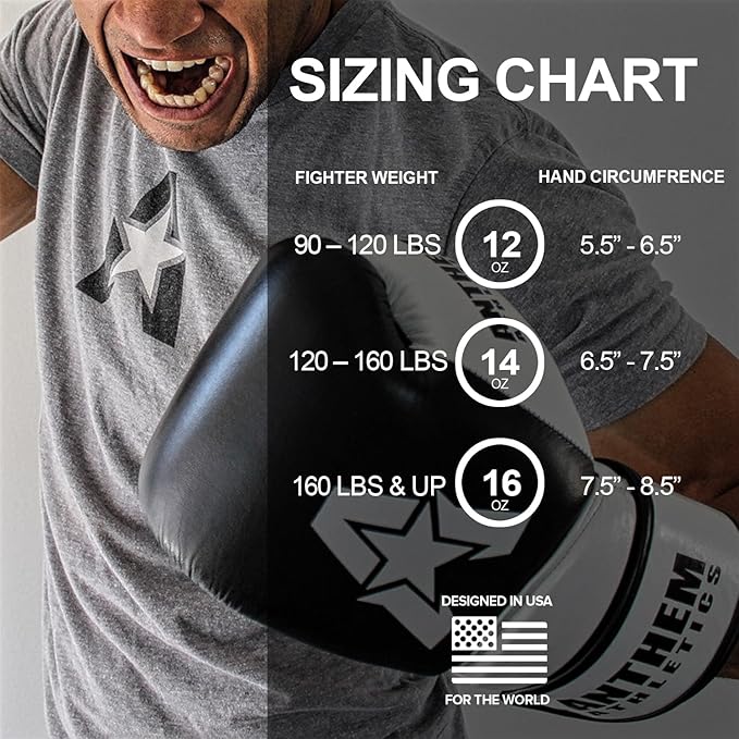 - AVAILABLE IN 12 OZ 14 OZ AND 16 OZ SIZES. Pick the leather boxing gloves size that works for you – designed for men, women (unisex) and kids. Last image sizing chart