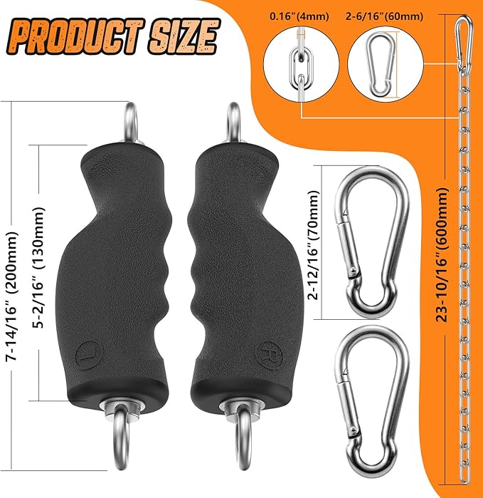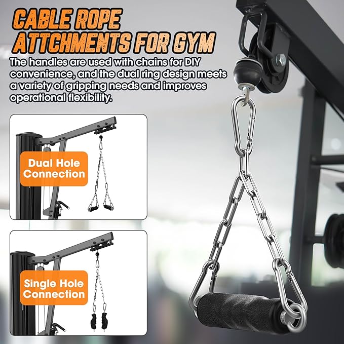 - Designed for DIY: The exercise cable handle accessory is equipped with 2 x 304 stainless steel extension chains and 4 x carabiner hooks, allowing you to combine and match them according to your personal preferences and training needs to create a personalized training program