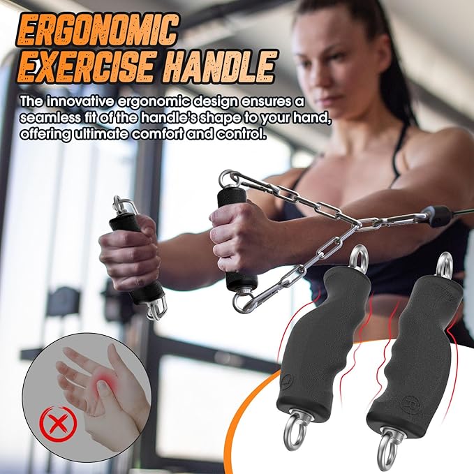- Exquisite Production: The fitness handle for cable machine is made of quality TPE rubber and stainless steel, which is non-slip, wear-resistant and durability, able to withstand high-intensity training challenges and prolong the service life of the product