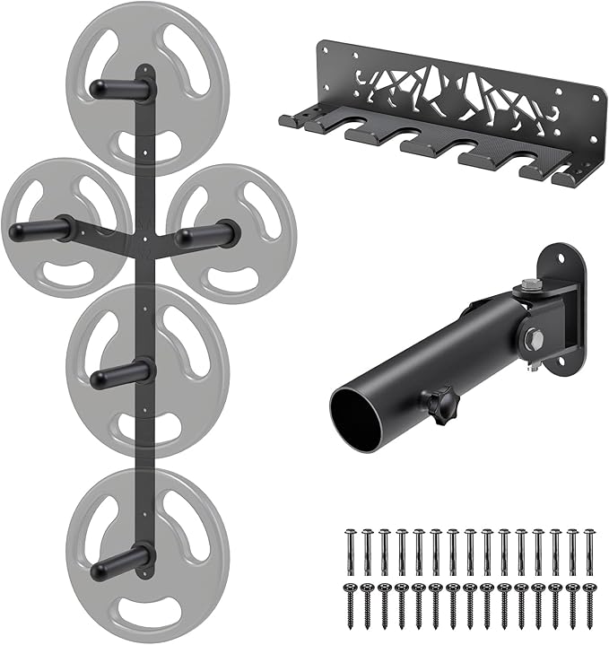- EASY TO INSTALL AND VERSATILE: Our rack is easy to install and remove. The package includes all mounting hardware, including 18 expansion screws for mounting on concrete walls and 18 wood screws. Suitable for both garage gyms and home gyms, this versatile set is the perfect addition to any strength training routine. Upgrade your gym experience today and reap the benefits of a well-organized, efficient workout space