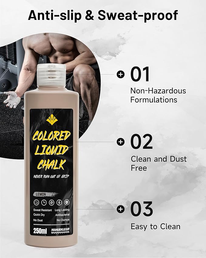 - ๐๐ฆ๐ฉ๐ซ๐จ๐ฏ๐๐ ๐๐ซ๐ข๐ฉ ๐๐จ๐ซ ๐๐๐๐ค ๐๐๐ซ๐๐จ๐ซ๐ฆ๐๐ง๐๐: Just a small drop of MANUEKLEAR liquid chalk enhances your grip, preventing slips caused by sweat or oil. With a long-lasting, strong grip, youโll feel more confident and focused during your workouts. Boost your performance in lifting, climbing, or any grip-intensive activity, knowing your hands will stay dry and secure.