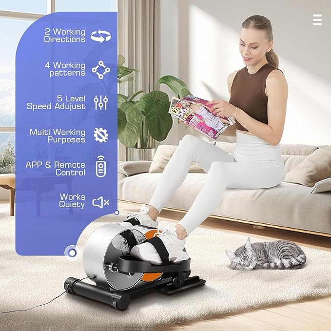 - 【Premium Materials, Exceptional Experience】: ANCHEER elipse leg exerciser electric as seen on tv is crafted from premium materials, featuring a sleek silver finish that exudes elegance and sophistication. Equipped with ANCHEER self-developed motor, it boasts double the lifespan of standard ellipticals and operates at a noise level below 15DB, making it the perfect choice for exercising anytime, anywhere.