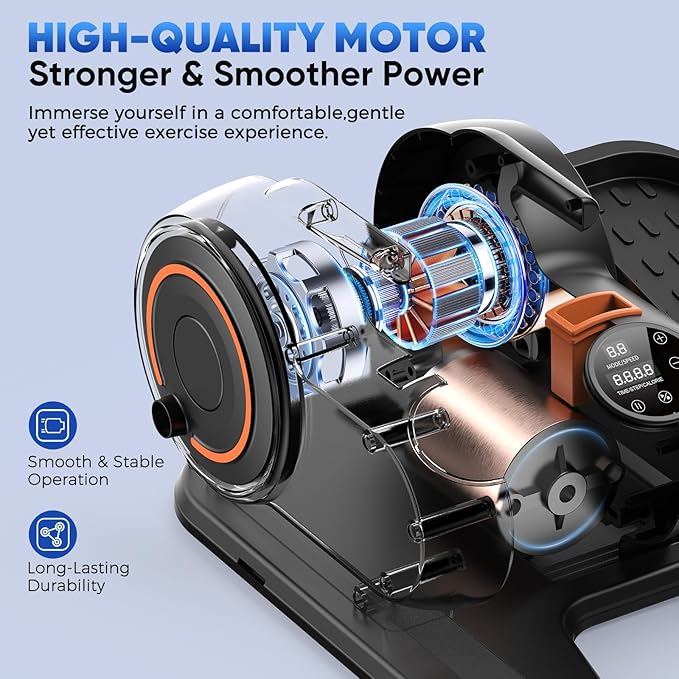 - 【LCD Digital Display & Remote Control】The LCD digital display shows speed, distance, mode, time, and calories in real time. With a sensitive remote control, you can easily adjust speed or mode without bending down. The widened anti-slip pedals that glide smoothly back and forth. Customize settings to strengthen leg muscles, relieve stress, or burn calories, all while enjoying a more efficient and convenient exercise experience. Note: Please remain seated while using the machine