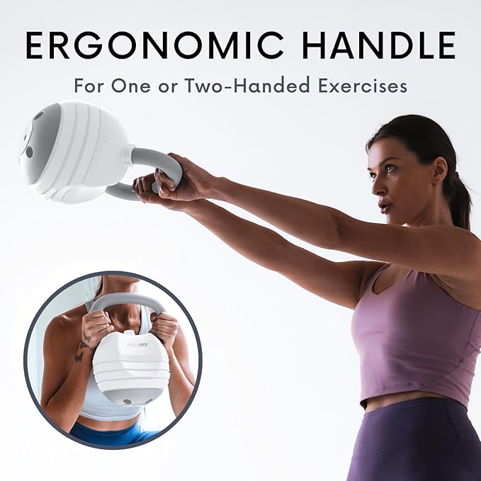 - NON-SLIP HANDLE | MATTE FINISH. Engineered with your comfort in mind, the Polyfit kettlebell's ergonomic handle ensures a secure and comfortable grip, reducing hand fatigue and preventing slips during intense workouts. The matte finish gives them a sleek and modern look, making them an excellent addition to any workout space.