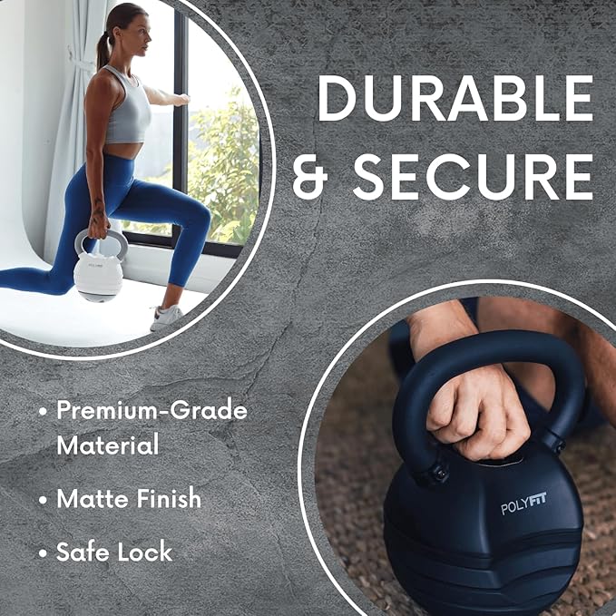- DURABLE CAST IRON | SOLID CONSTRUCTION. Crafted from premium-grade materials, the Polyfit adjustable kettlebell is built to withstand rigorous workouts, ensuring it remains a reliable fitness companion for years to come.