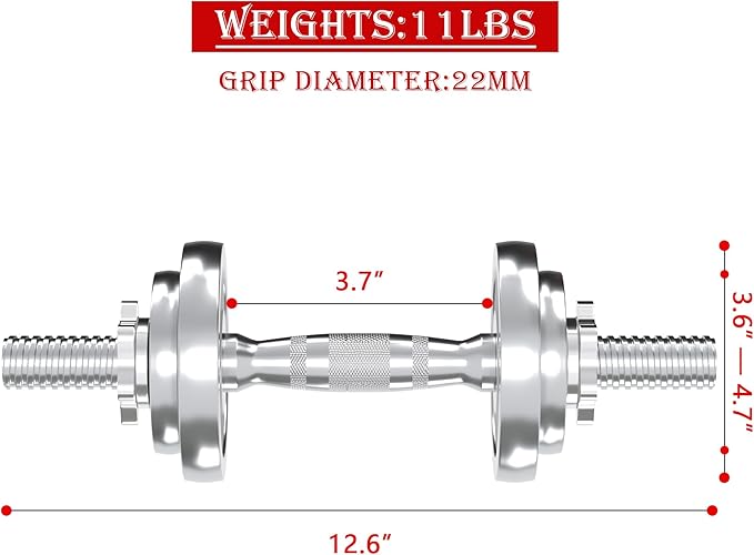- 【More Stable】- This dumbbell is made of solid pure iron, and the surface adopts a 7-layer electroplating process, don’t worry about rusting.The connector handle is knurled for better grip and increased safety during exercises. Compatible with 1-inch spin-lock dumbbells.