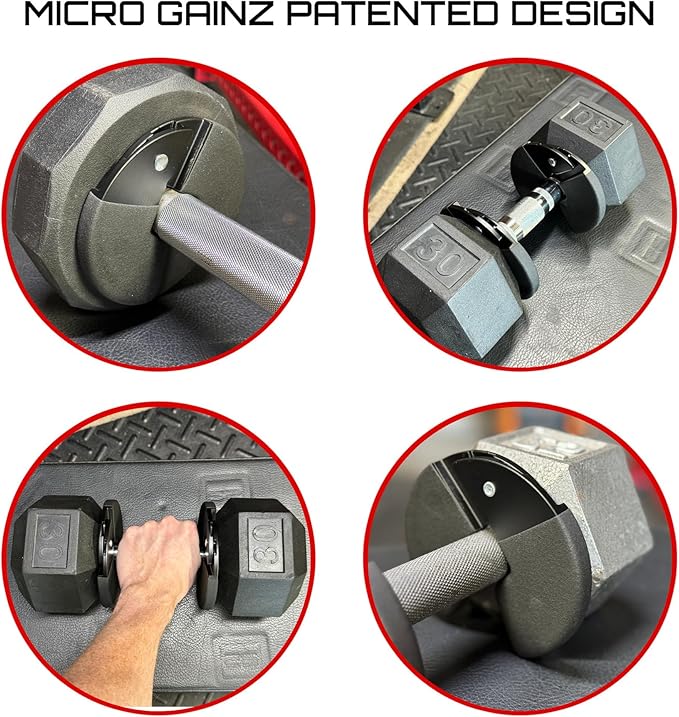 - Space-Saving Precision: Micro Gainz 2-Piece Dumbbell Micro Plate Weight Set – Four 1.25LB micro plates, expertly crafted for a secure fit on most dumbbell handles; Ideal for fractional weight, change plates, and enhancing barbell or weight plate sets; Elevate your workout with precision