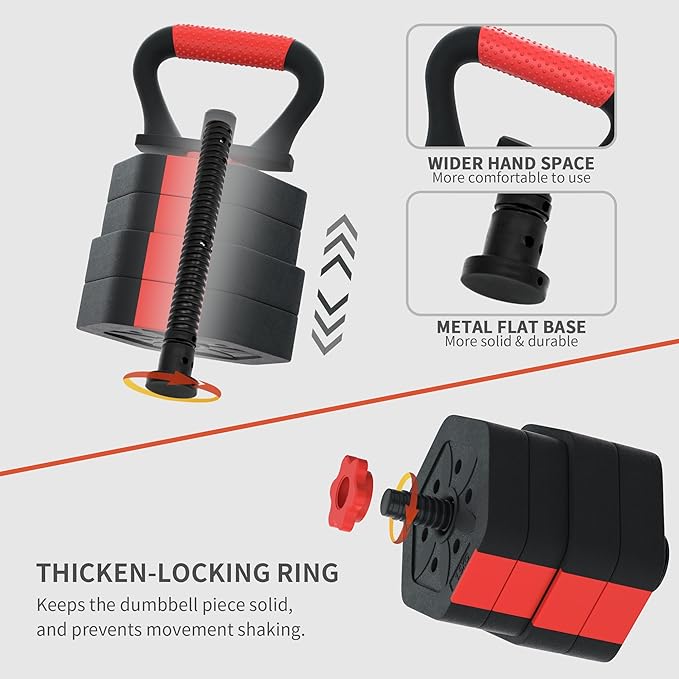 • Multifunctional Fitness Gear: Beyond being a dumbbell and barbell, and kettlebell, the Vivitory set doubles as a push-up board, grip trainer, and back training device. With easy assembly and disassembly, it eliminates the need for multiple fitness gadgets, saving you money and space