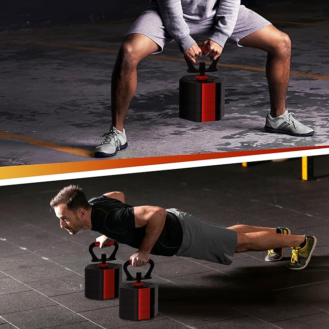 • Multifunctional Fitness Gear - Beyond being a dumbbell and barbell, and kettlebell, the Vivitory set doubles as a push-up board, grip trainer, and back training device. With easy assembly and disassembly, it eliminates the need for multiple fitness gadgets, saving you money and space