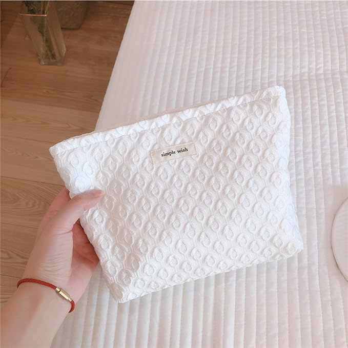 - Neepoms Pure White Makeup Bag Noble Floral Cosmetic Bag Cotton Toiletry Organizer Bag Portable Travel Bag Cute Pouch Case Make Up Bag for Women
