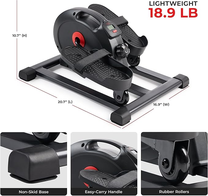 - 【EFFORTLESS EXERCISE FOR EVERYONE】This under-desk pedal exerciser makes it effortless to stay active. The low-impact motion plus 7-Inch stride length allows you to gently work out while going about your day, perfect for office employees, adults, and seniors.
