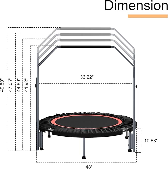 - Adjustable Height Handlebar: The trampoline is equipped with a height-adjustable handlebar that provides stability and support during your workouts. It can be easily adjusted to suit your height and fitness level.