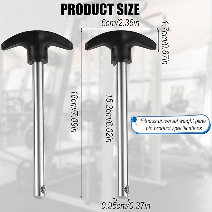 - Product Size: With a 3/8 inch diameter; 6 inch locking space, and 7.09 inch in length, this pin is designed to fit most weight machines and exercise equipment, offering versatility for various gym setups.