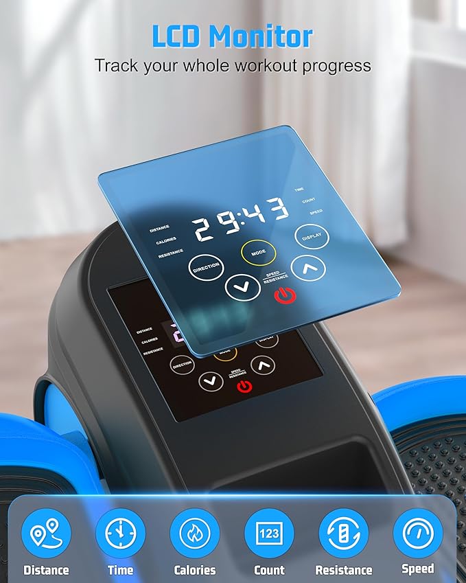 - 【Smart Display Screen, Monitor Whole Workout】This ellipse leg exerciser as seen on TV tracks your workout time, distance, and calories burned, making it simple to monitor your progress and stay motivated. Large display makes it easy to read and operate, suitable for all ages