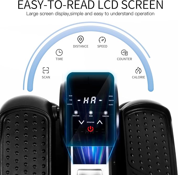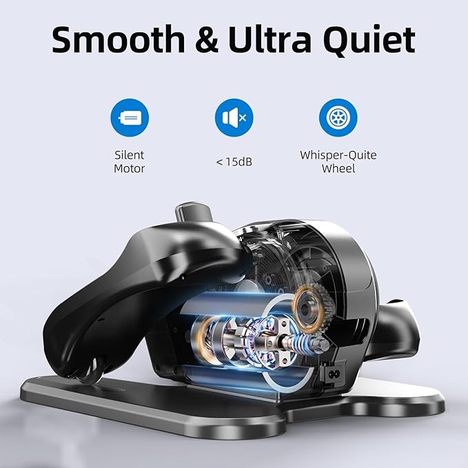 - 【Silent Operation】The elliptical machine for home and office features the latest silent system and motor and the sound is less than 15 decibels when used tested by professional instruments. Our ellipse leg exerciser allow you to enjoy your noiseless workout anytime, anywhere without disturbing your coworkers or family. It can be directly plugged in and used without additional installation. (Note: Standing on the device may cause serious injury and damage to the elliptical machine.)