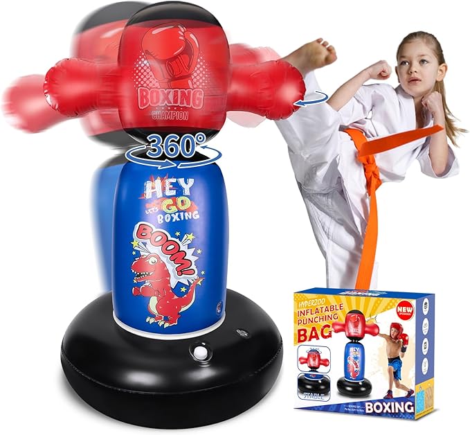 Punching Bag for Kids, Hyperzoo 360°Rotating Inflatable Kids Heavy Punching Bags, Freestanding Heavy Boxing Bag Toy Christmas Birthday Gift for Boys Girls 3-12 Karate, Taekwondo