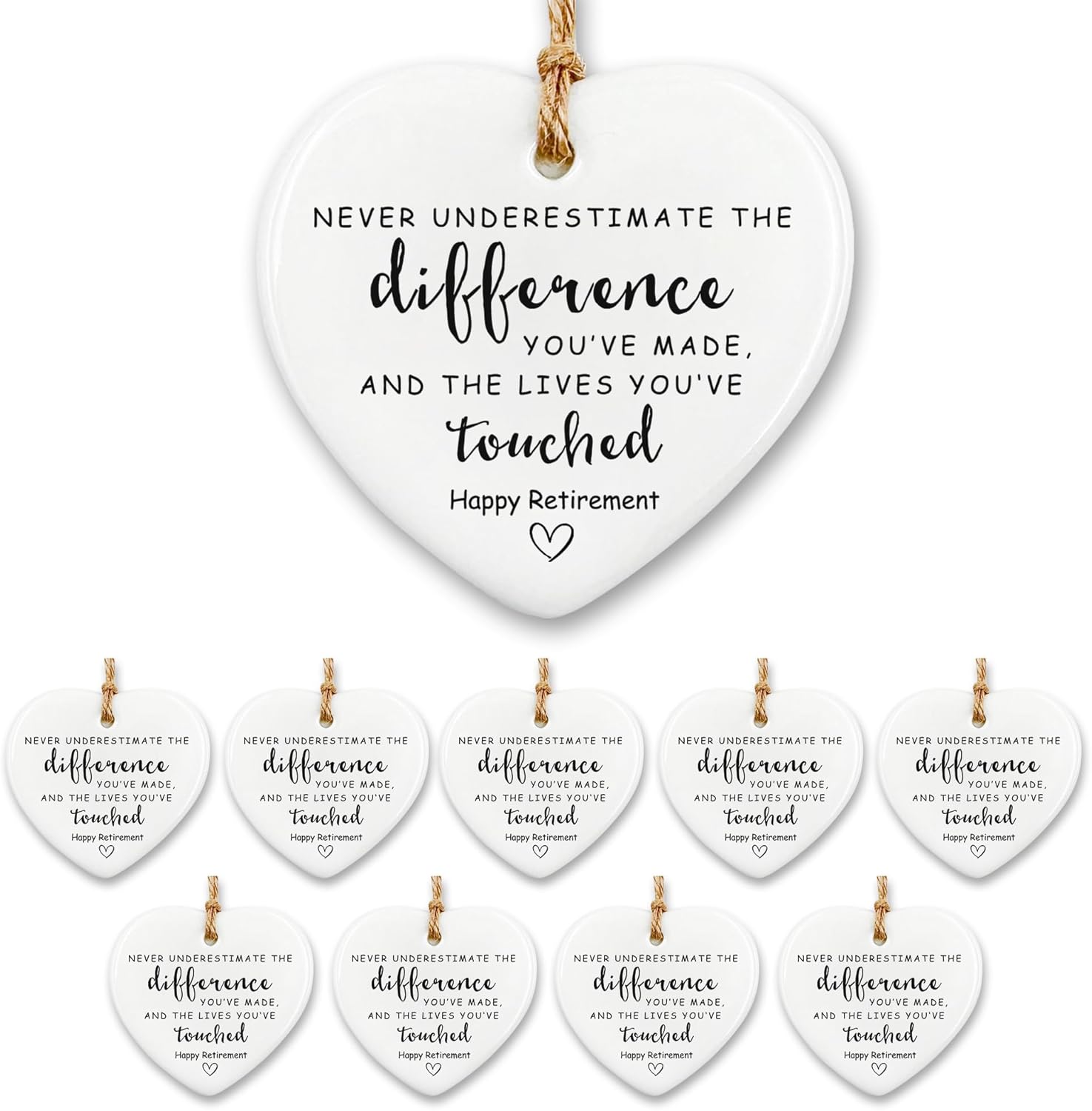 10 Pcs Retirement Gifts for Woman Men,Never Underestimate The Difference You Made Ceramic Ornament Happy Retirement Going Away Gift Leaving Gifts for Coworker,Boss,Nurse,Teacher,Friend,Mom
