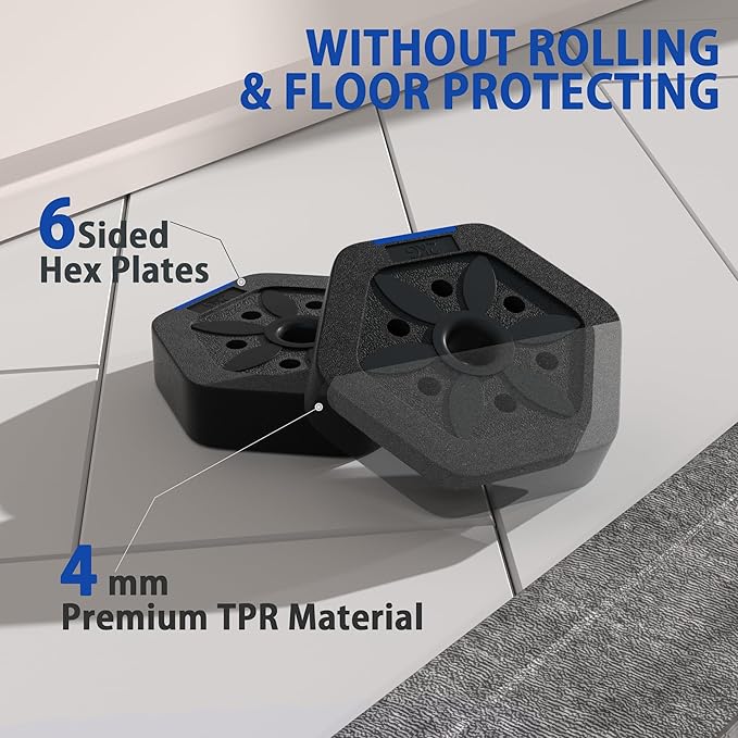 - Robust Hexagonal Design: Vivitory home dumbbell set features a hexagonal shape to prevent rolling and ensure convenient storage. Crafted from durable materials like polyethylene, EVA resin, and a cement mixture, it's sturdy and floor-friendly. The foam-covered connecting rod minimizes neck strain, and the non-slip rubber-coated handle offers a secure grip, making it the perfect home workout partner