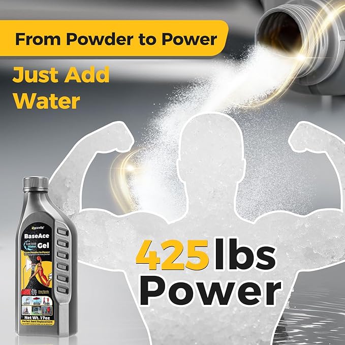 - Quick-Setup Simplicity: Just evenly mix BaseAce Gel with water—in 5-10 minutes, create a rock-solid, stable base for basketball hoops or equipment. No tools, no sand—just pour, activate, and enjoy mess-free, unshakable security