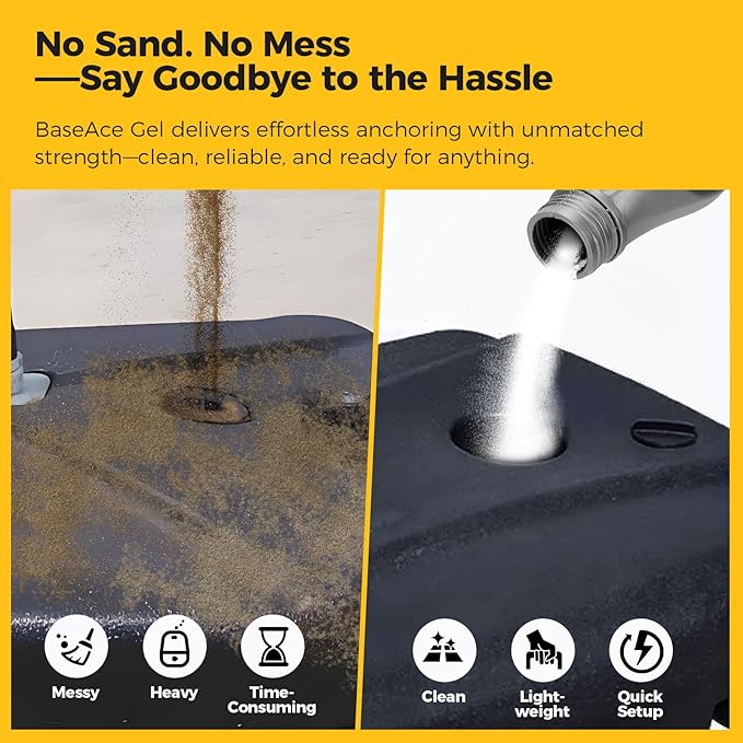 - Ditch Sand & Water—UPGRADE TO BASEACE GEL: Eliminate messy, costly sand and leak-prone water. BaseAce Gel’s freeze- & leak-proof formula locks down basketball hoops, umbrellas, or gear—zero spills, zero damage. Cost-effective, long-lasting