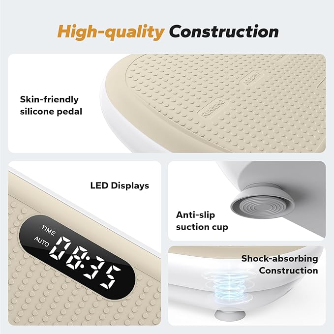 - Better Exercise Experience:Equipped with Bluetooth connectivity and built-in speakers, this vibration plate syncs with your devices to play motivational music. The textured silicone pedals offer secure footing and comfort during extended use, while the eco-friendly materials ensure odor-free operation.