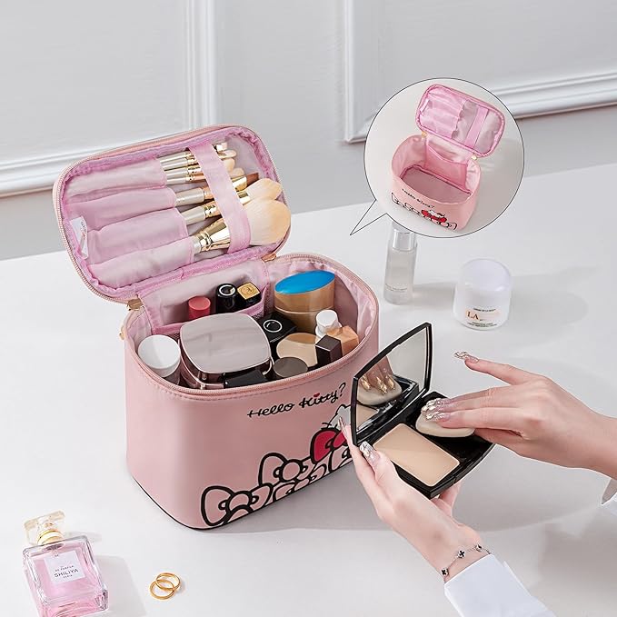 - Separate Brushes Compartment - Travel waterproof makeup bag comes with a separate space to hold your brushes and protect them from dust.There is an independent side pocket inside for lipstick, small perfume, jewelry, etc, which is very practical. Size:8.7 x 4.7 x 6.3 inches