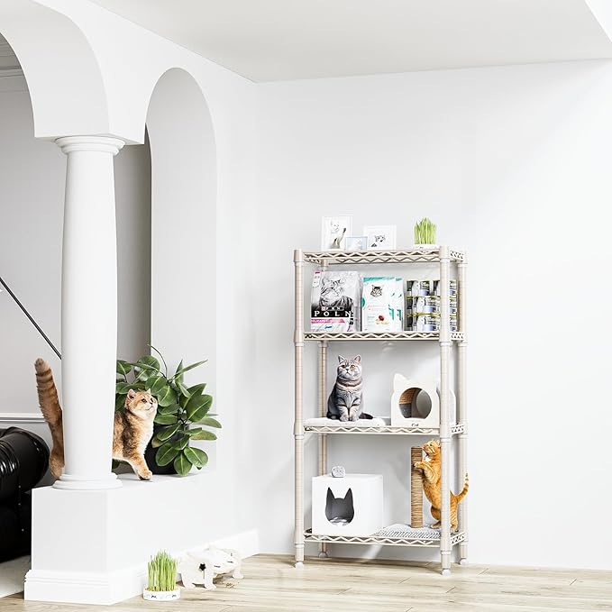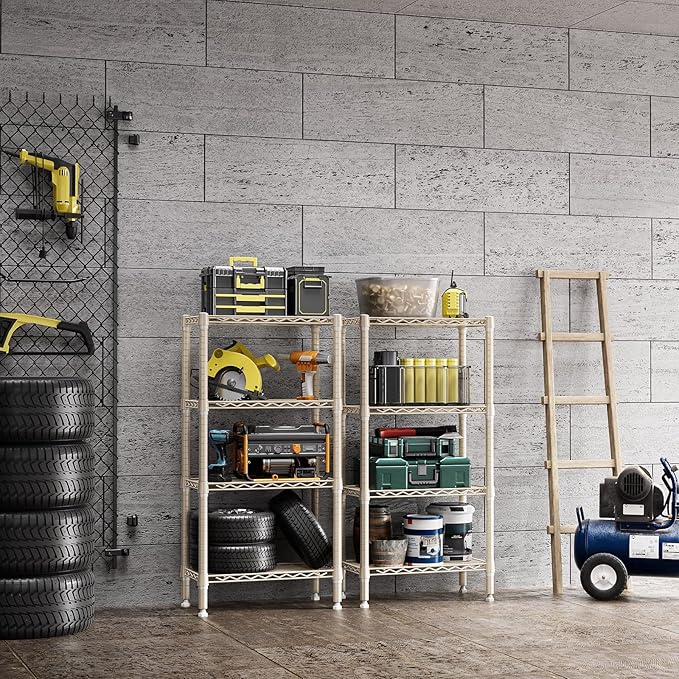 1000 lbs 4 Tier Shelf Metal Storage Shelves Wire Rack Closet Organizers for Garage Kitchen Bathroom Laundry Light Tan 11.8" D x 23.6" W x 47.5" H