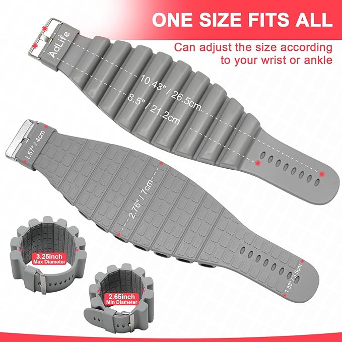 - [VERSATILE FITNESS & REHAB SOLUTION] The package includes a set of 2 grey ankle wrist weights (1LB/each, 2LB/pair) for both women and men. Each open iron block can be easily removed to adjust the weight, allowing these land or water exercise weights to offer a customizable fit on your wrists, arms, ankles, hands, or legs. This adjustability enables you to tailor the intensity of your at-home workouts. Whether you're focusing on strength training, fitness routines, looking for small, portable workout equipment for daily use, or seeking an adaptable essential kit for rehabilitation, these adjustable wrist ankle weight are the ideal choice for everyone.