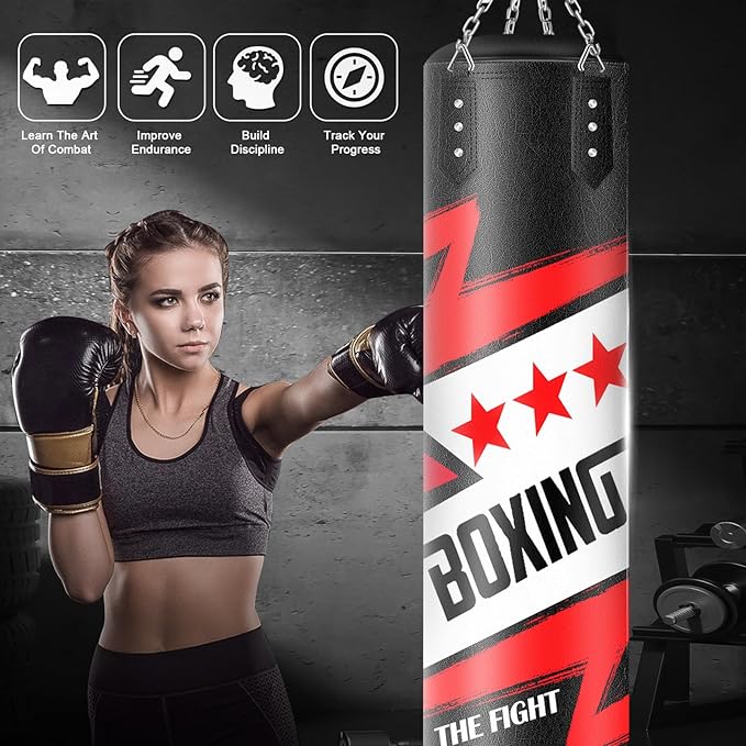 - Universal Boxing Equipment: Our boxing punching bag can withstand intense training and exercise sessions, allowing you to practice punches, kicks, jabs, hooks and uppercuts freely, increase speed and develop solid footwork. Perfect for practicing boxing, mma, taekwondo, muay thai, karate, judo, kickboxing, wushu, krav maga and self-defense training