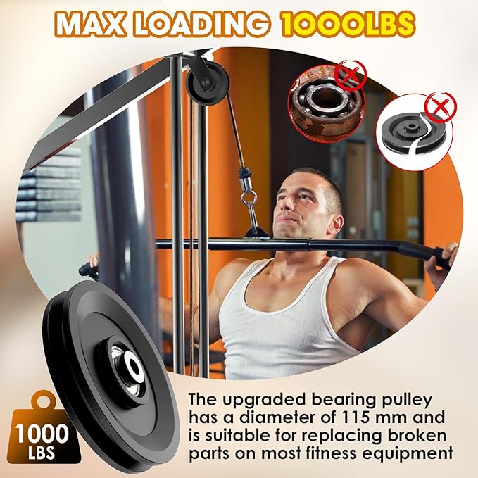 • Precision Bearing, Smooth and Silent: Built-in highly-precise metal bearings, metal bushings are not easy to corrode and rust, smooth and soundless operation, and the gym pulleys roll as smooth as silk, adding a sense of serenity and concentration to your fitness experience