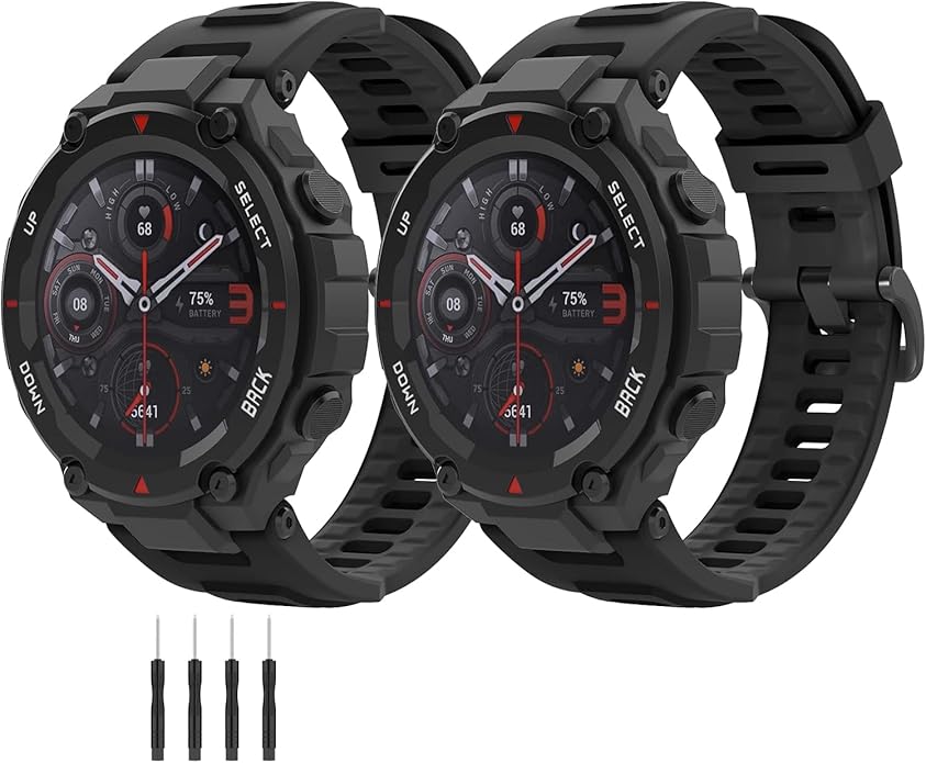- 【Easy installation】No gaps amazfit t-rex watch bands with quick release spring pins. Make your amazfit watch look more classy. Lock onto your amazfit t-rex smartwatch securely & tightly, Easy to assemble and remove, no tools needed.