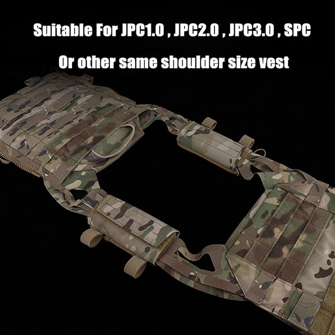 - FIT UP TO 2.7" STRAP -- Our tactical vest shoulder pads feature an adjustable and strong adhesive hook and loop design that fits your needs quickly. snugly fit straps measuring 2.7"/7cm in width,ensuring snugness, comfort, and handiness on your FCS, LBT, JPC, or other vest to non-slip and lighten the load.