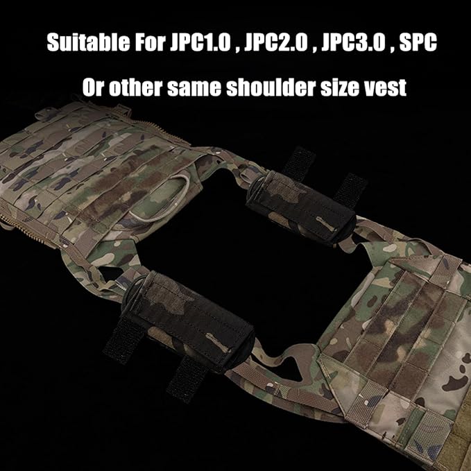 - FIT UP TO 2.7" STRAP -- Our tactical vest shoulder pads feature an adjustable and strong adhesive hook and loop design that fits your needs quickly. snugly fit straps measuring 2.7"/7cm in width,ensuring snugness, comfort, and handiness on your FCS, LBT, JPC, or other vest to non-slip and lighten the load.