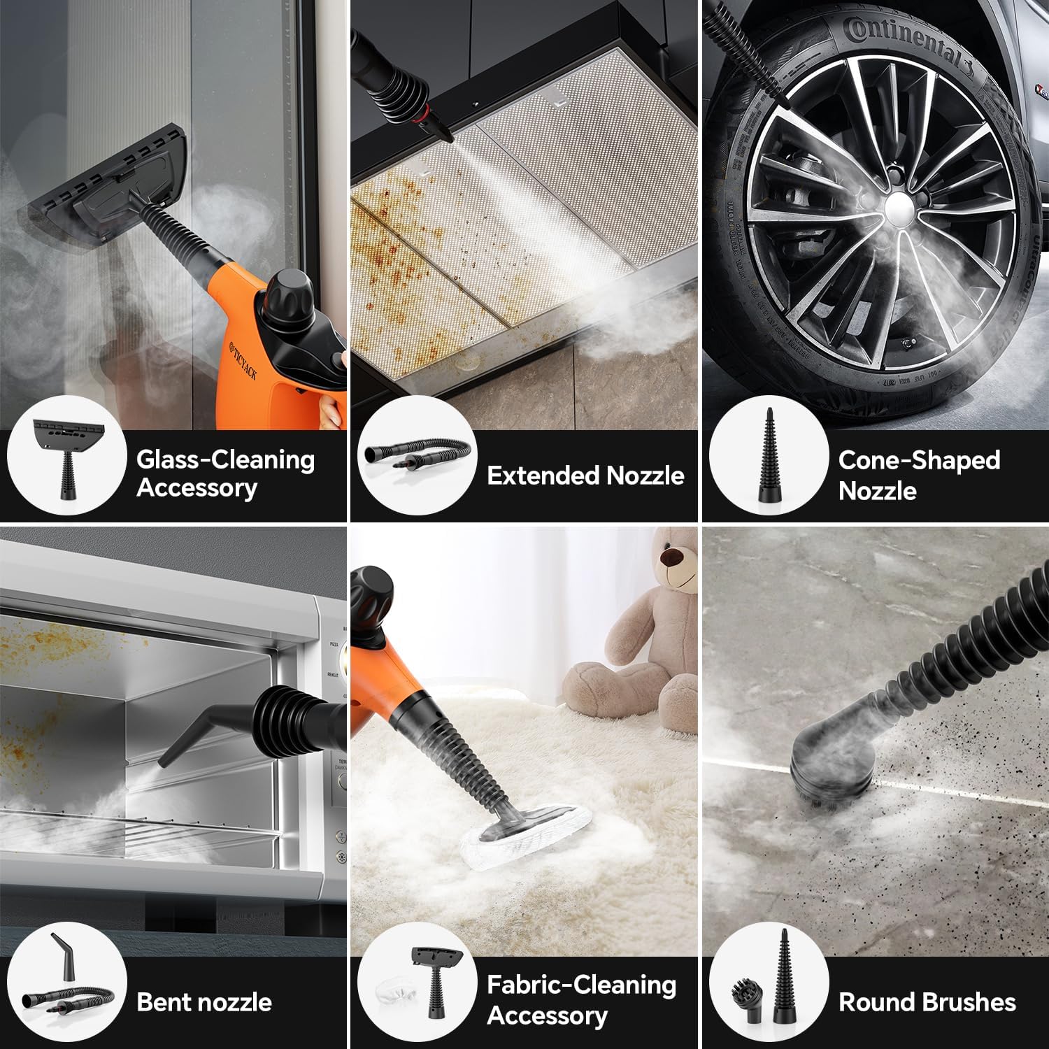 - 【16-Piece Steam Cleaner Set】Our household steam cleaners come with a comprehensive 16-piece accessory set, providing you with the flexibility to choose the right tools for cleaning hard-to-reach areas. Handheld Steam Cleaner can be used in different scenarios, for example kitchen, bedroom, living room, car leather goods, bathroom, clothing and so on. Whether it is stubborn grease or dust in the crevices, it can be swept away.