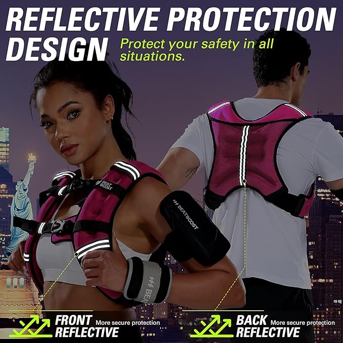 - 【ENHANCED SAFETY】Equipped with reflective strips, our vest enhances visibility during low-light conditions. Whether you're exercising at dawn or dusk, you'll feel secure knowing that you're visible to others, promoting safer outdoor workouts