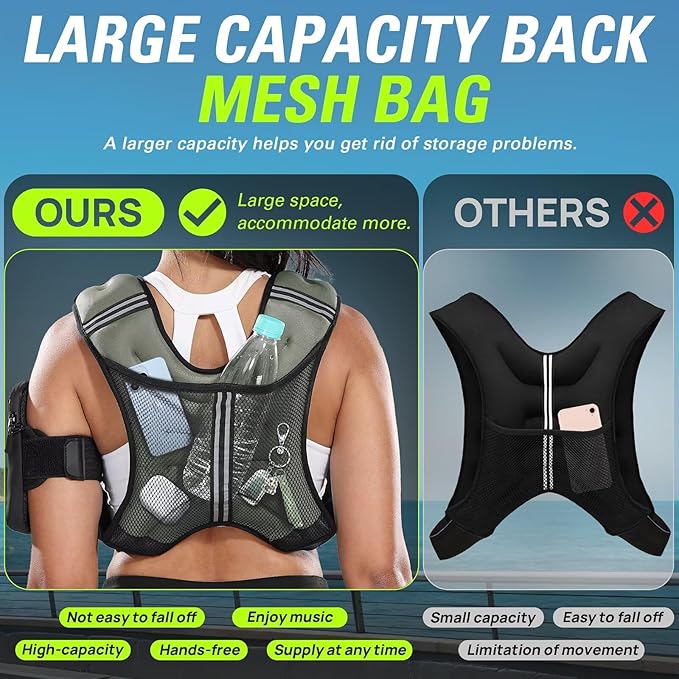 - 【ENHANCED SAFETY】Equipped with reflective strips, our vest enhances visibility during low-light conditions. Whether you're exercising at dawn or dusk, you'll feel secure knowing that you're visible to others, promoting safer outdoor workouts