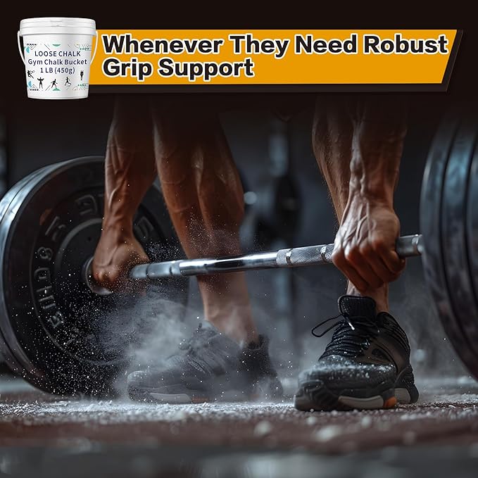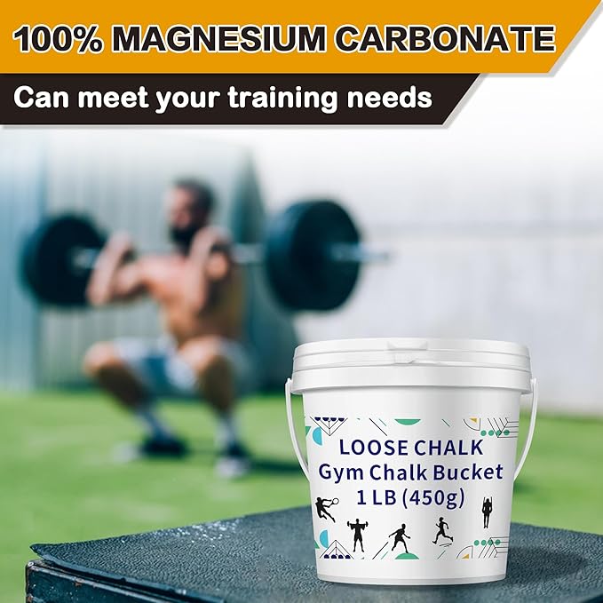 1 LB Loose Gym Chalk Bucket - Premium Powder Chalk with Empty Chalk Bag & Spoon, Multi-Purpose for Weightlifting, Gymnastics, and Workouts