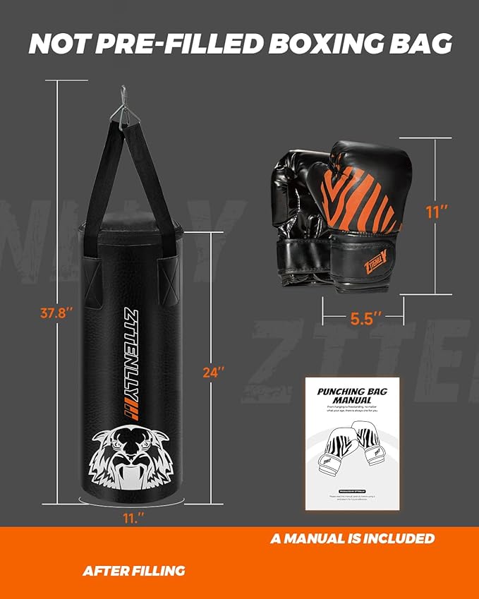 - UNFILLED: our punching bag comes unfilled to carry and store easily. Need your filling, the filling preferably no more than 70lbs. You could fill it with used old cloth/blankets/sheets/insulation etc.