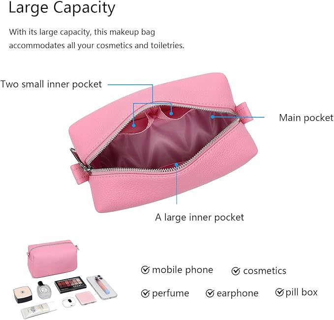 - 【High-Quality Material】Crafted from premium pu leather material,this bag is not only soft and lightweight, but also durable and long-lasting, ensuring your cosmetics stay safe and secure.